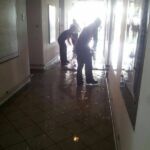 | Einsatzbericht: | Am Sonntagvormittag, 20.07.2014, um kurz nach halb neun wurde der Feuerwehr über Notruf 112 ein größerer Wasserschaden im Geb. 2224 der Universität Mainz gemeldet. Sofort wurden Einsatzkräfte der Berufsfeuerwehr und der Freiwilligen Feuerwehr Mainz-Bretzenheim zum Einsatzort entsandt. Vor Ort stellte sich heraus, dass in einem Labor im 3. OG wohl durch Materialermüdung ein Wasserschlauch an einem Labortisch abriss und über Stunden unkontrolliert Wasser ausgetreten war. Das Wasser verteilte sich auf die anliegenden Räume und war dann über die Decken in die darunter liegenden Stockwerke bis in den Keller gelaufen. In vielen Räumen und den Fluren stand das Wasser auf einer Gesamtfläche von ca. 1500 m² zentimeterhoch. Gerätschaften und Einrichtungen wurden durch das Wasser beschädigt und zum Teil in Mitleidenschaft gezogen. Die Feuerwehr war mit 23 Einsatzkräften vor Ort und mit mehreren Wassersaugern rund dreieinhalb Stunden beschäftigt um weiteren Gebäudeschaden durch das ausgetretene Wasser zu verhindern. Der Sachschaden lässt sich leider noch nicht genau beziffern. (Text der BF Mainz) |